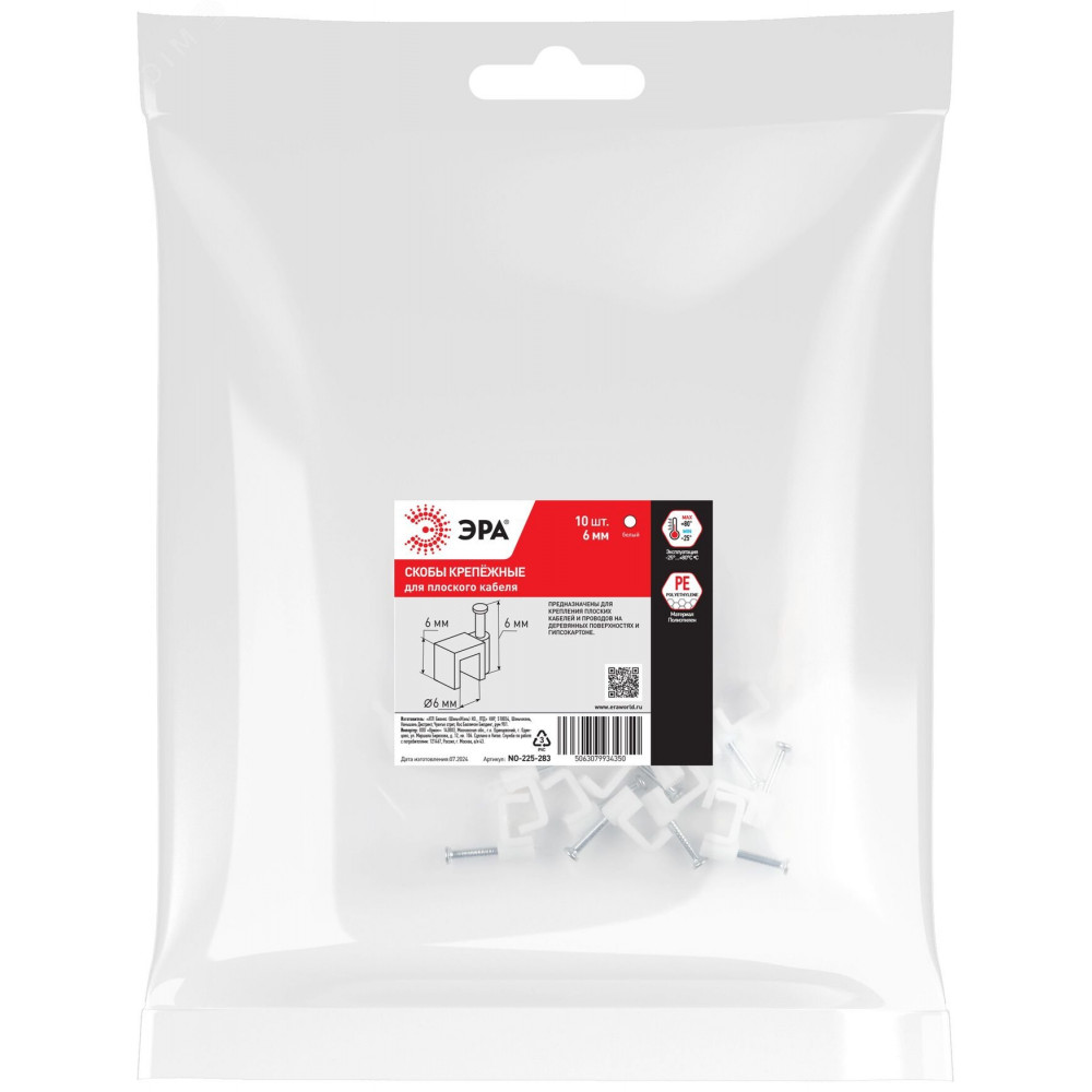 Описание Скоба пластиковая крепежная плоская 6 мм белая NO-225-283 10 шт/уп Б0066608