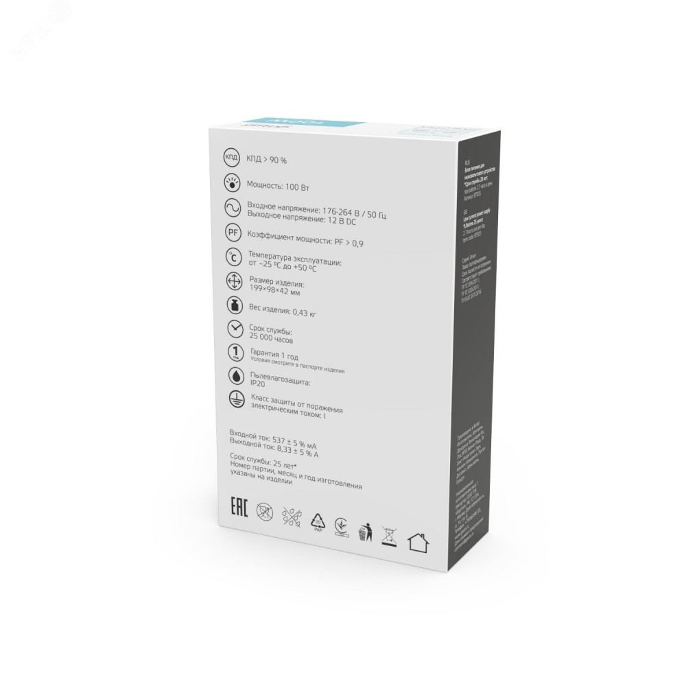 Доставка Блок питания для светодиодной ленты 100 Вт AC 176-264В Uвых 12В IP20 159х98х42мм Basic BT505
