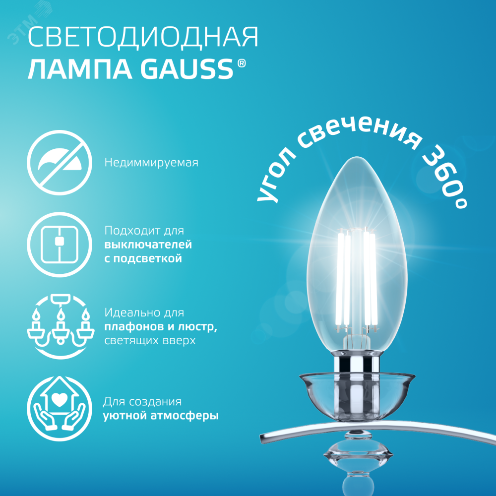 Описание Лампа светодиодная филаментная LED 12 Вт 750 лм 4100К свеча нейтральный E14 AC 220В прозрачная колба Elementary 32122