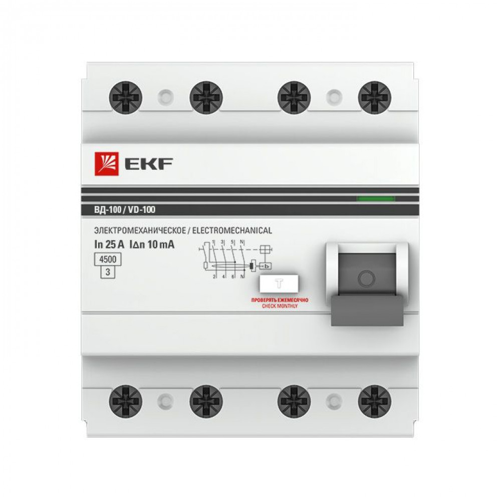Описание Выключатель дифференциального тока ВД-100 4P 16А 30мА тип АС электромеханический 4,5кА PROXIMA EKF elcb-4-16-30-em-pro