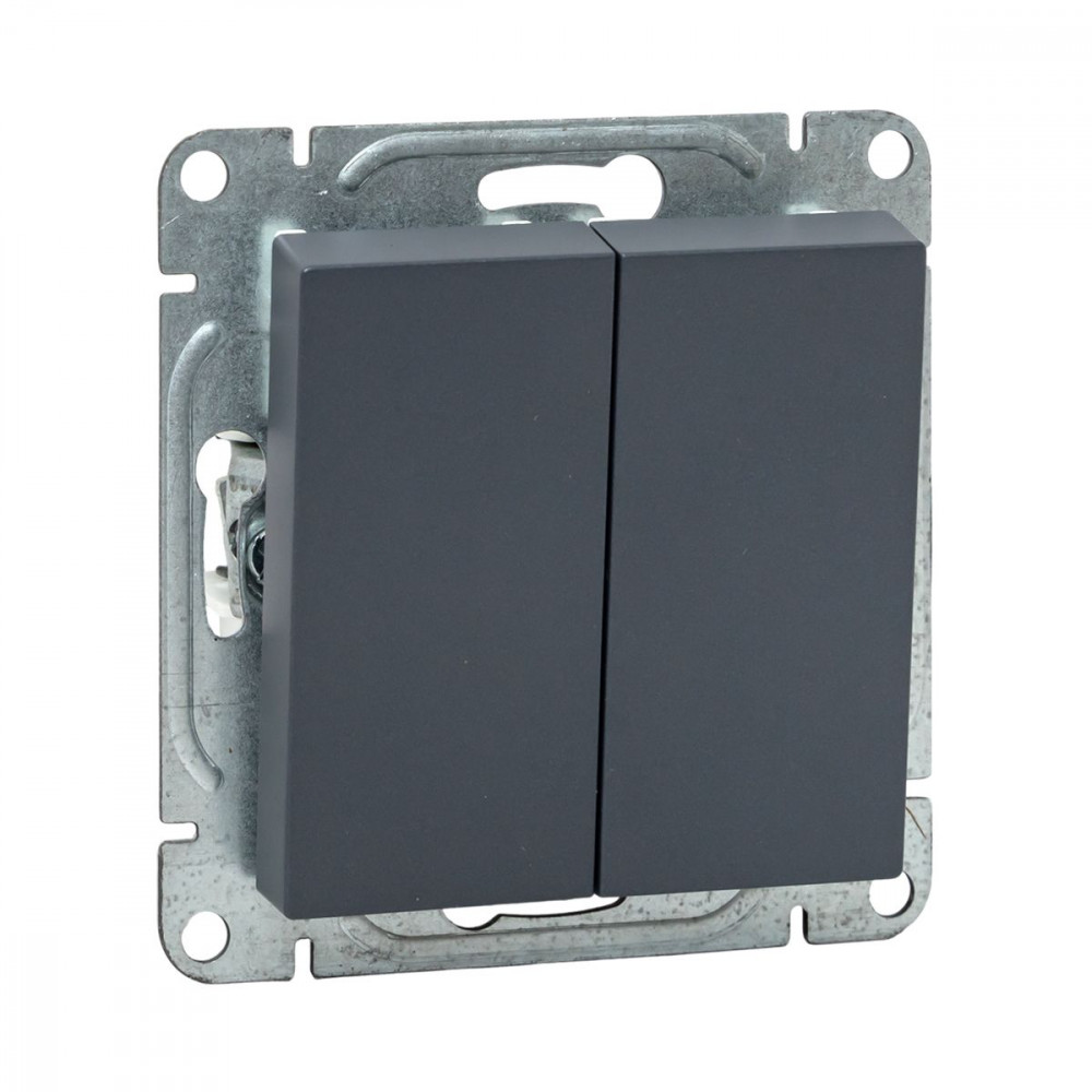 Описание Механизм выключателя, двухклавишный, кнопочный, графит Эпика EKF UP1-SWG-23