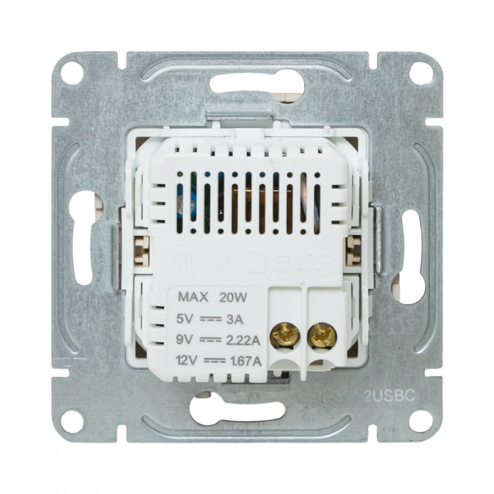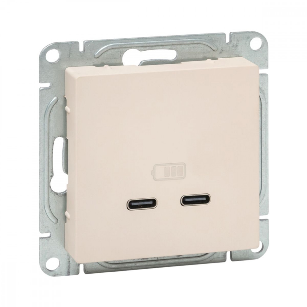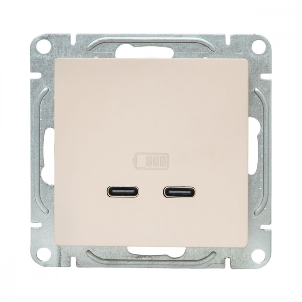Механизм розетки USB-C - 2шт, кремовый Эпика EKF UP1-SOI-2USBC, Розетка скрытого монтажа