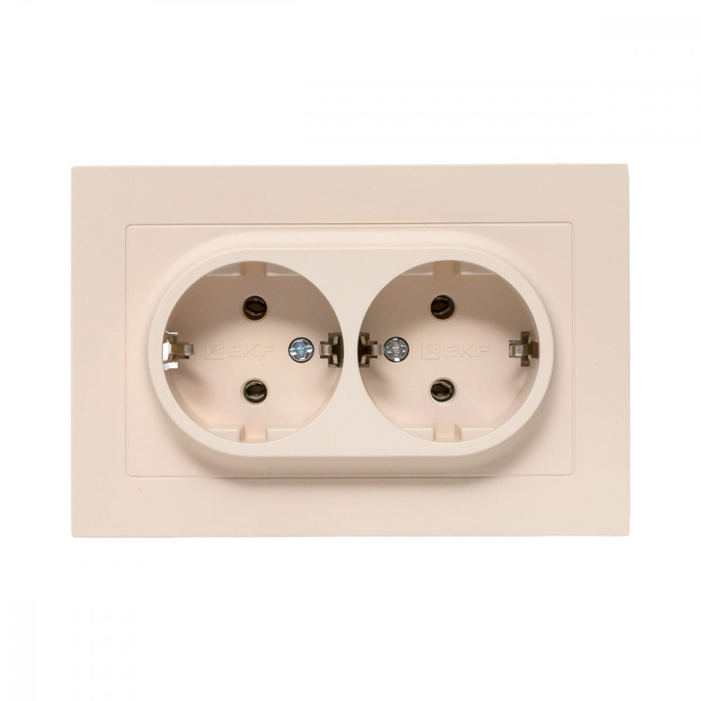 Доставка Механизм розетки двойной, 16А, с заземлением, без шторок, с рамкой, кремовый Эпика EKF UP1-SOI-210