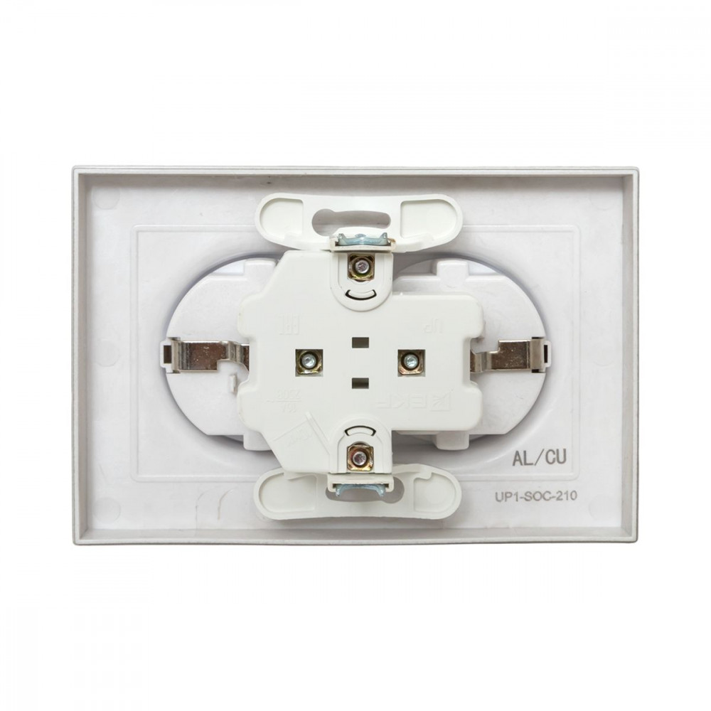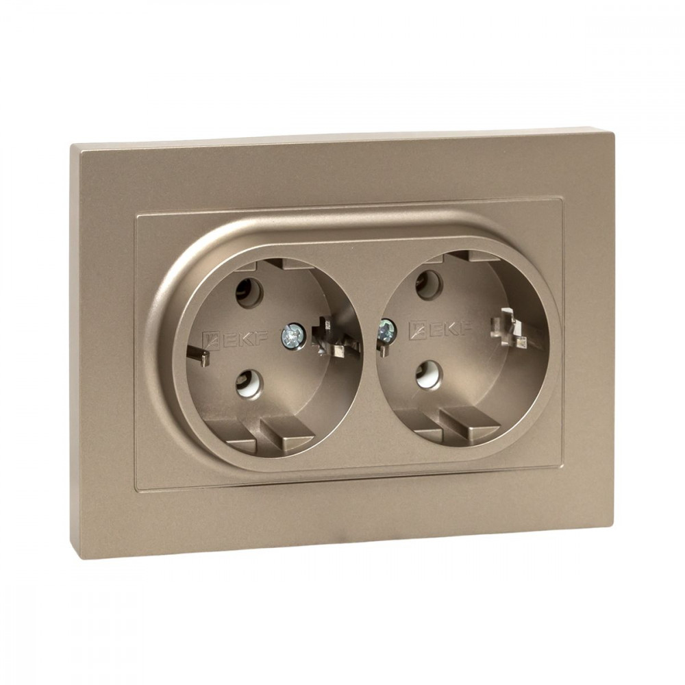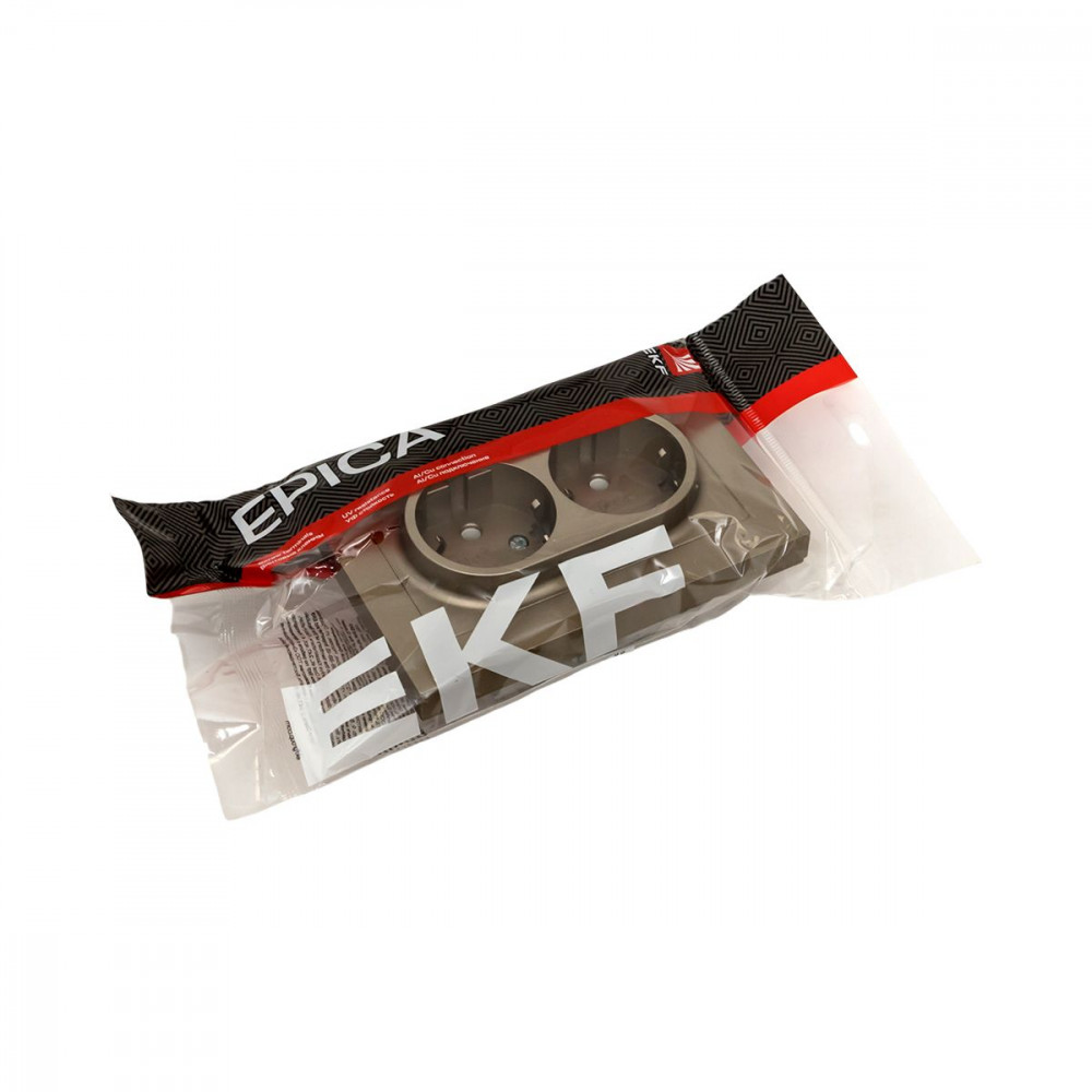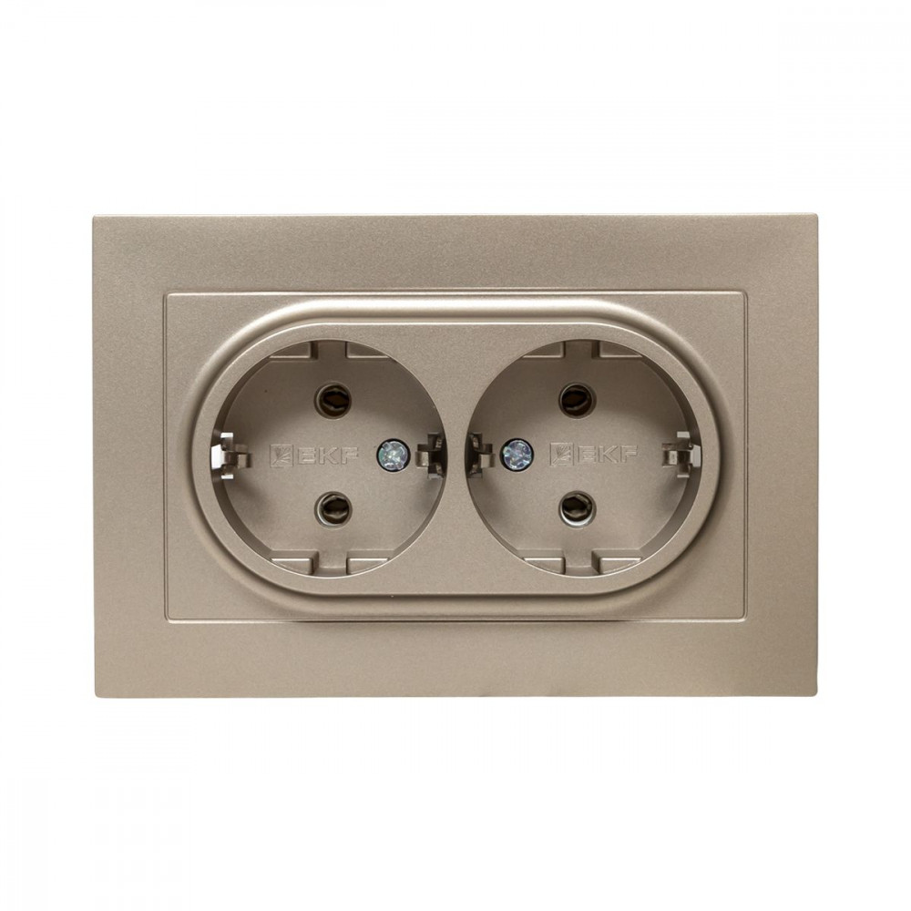 Описание Механизм розетки двойной, 16А, с заземлением, без шторок, с рамкой, шампань Эпика EKF UP1-SOC-210