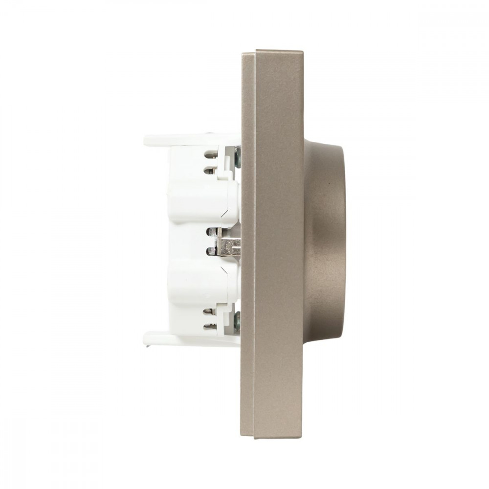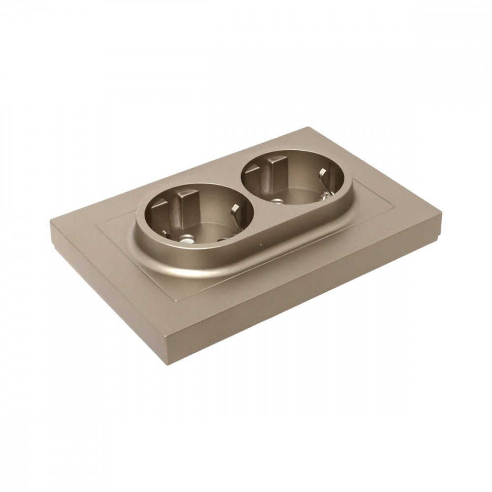 Механизм розетки двойной, 16А, с заземлением, без шторок, с рамкой, шампань Эпика EKF UP1-SOC-210, Розетка скрытого монтажа