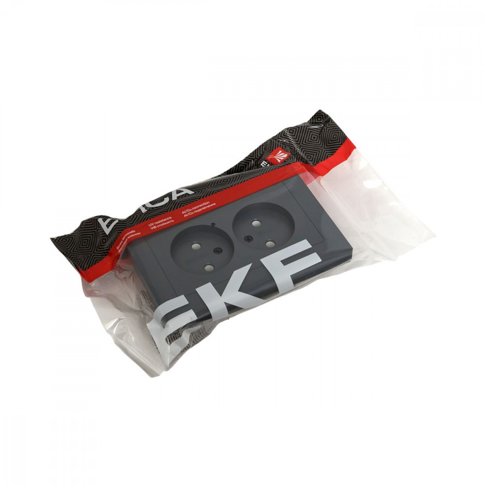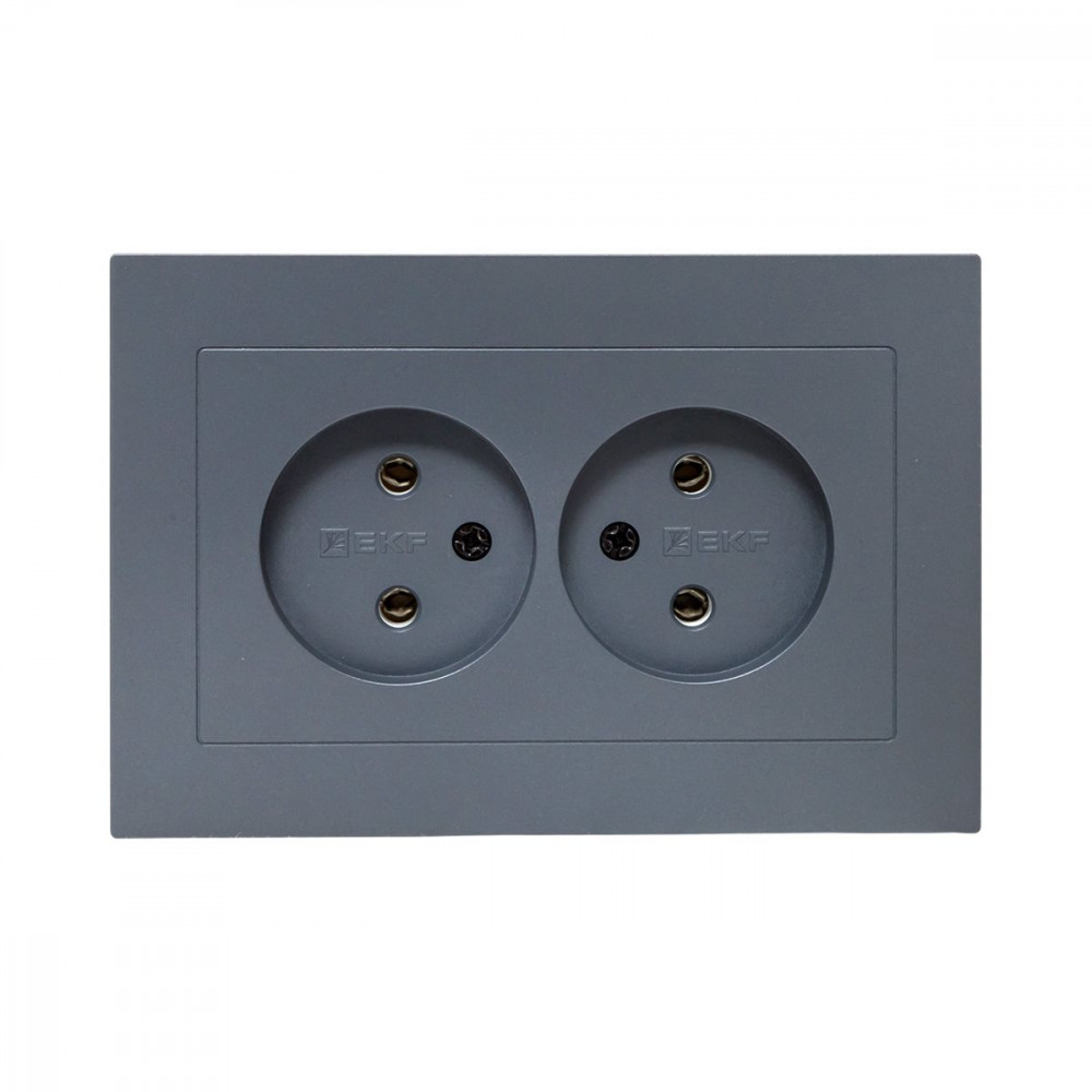 Описание Механизм розетки двойной, 16А, без заземления, без шторок, с рамкой, графит Эпика EKF UP1-SOG-200