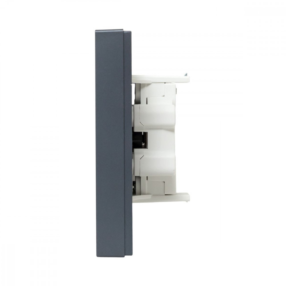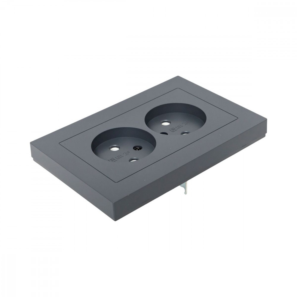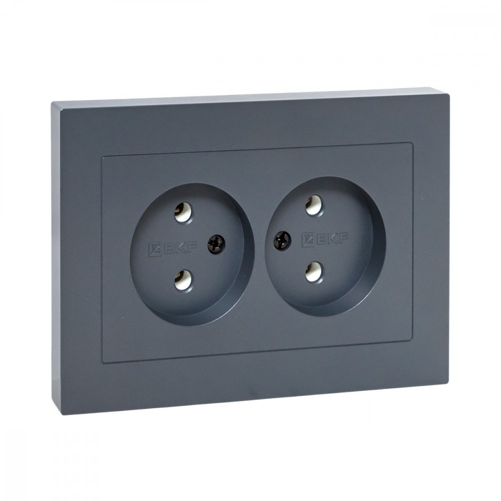 Механизм розетки двойной, 16А, без заземления, без шторок, с рамкой, графит Эпика EKF UP1-SOG-200, Розетка скрытого монтажа