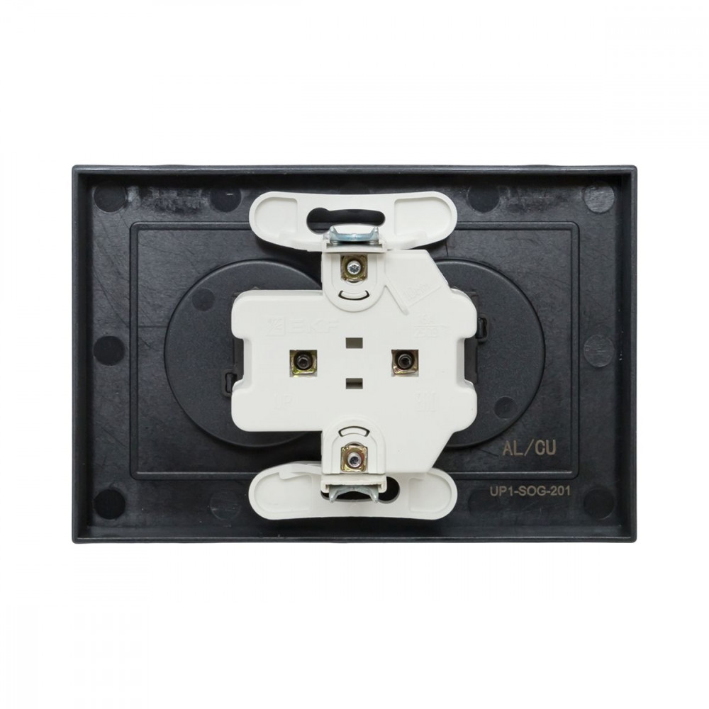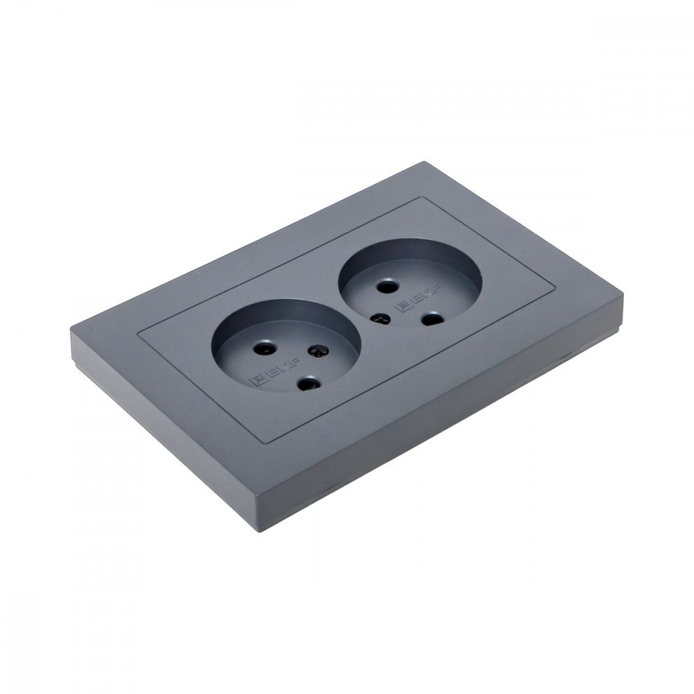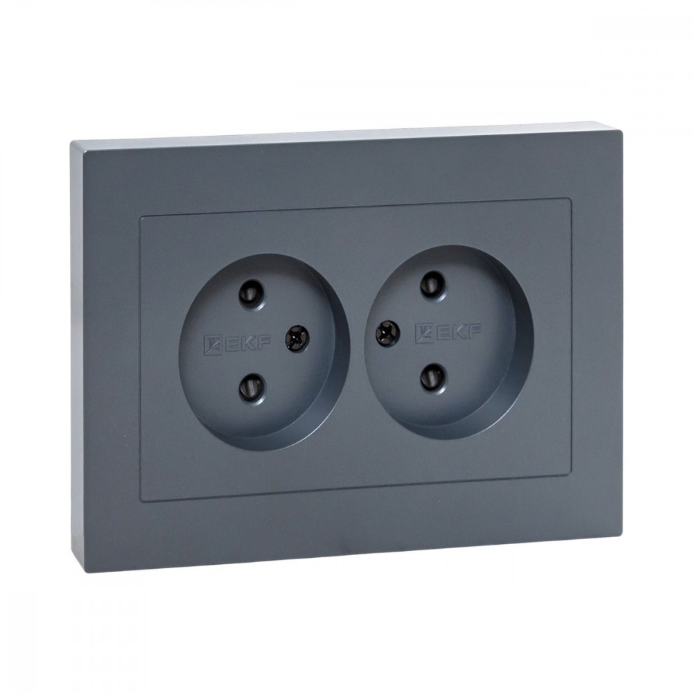 ← Механизм розетки двойной, 16А, без заземления, без шторок, с рамкой, графит Эпика EKF UP1-SOG-200