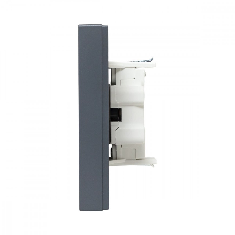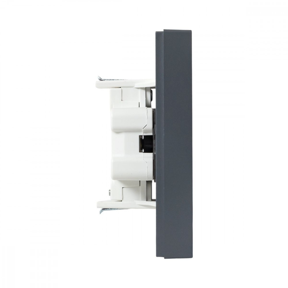 Механизм розетки двойной, 16А, с заземлением, без шторок, с рамкой, графит Эпика EKF UP1-SOG-210 →