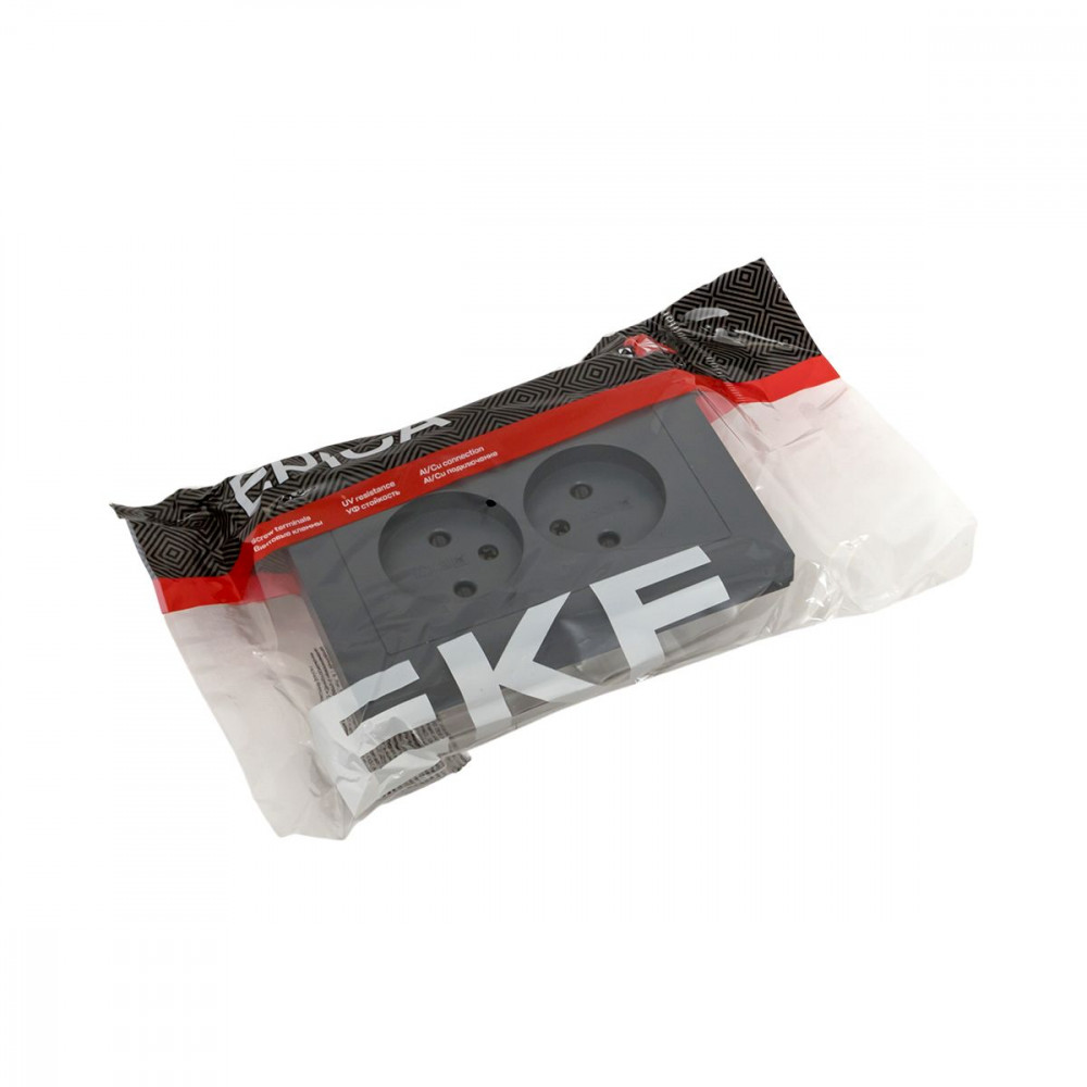 Доставка Механизм розетки двойной, 16А, без заземления, со шторками, с рамкой, графит Эпика EKF UP1-SOG-201