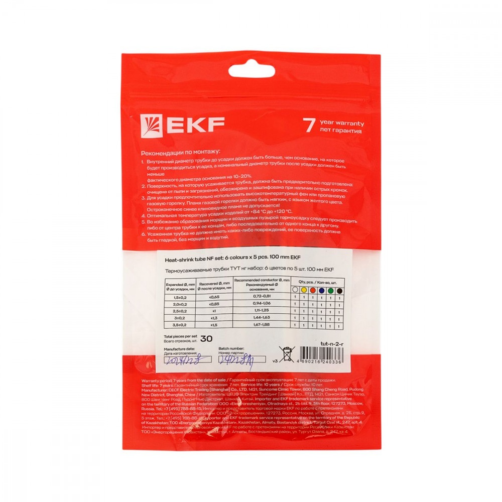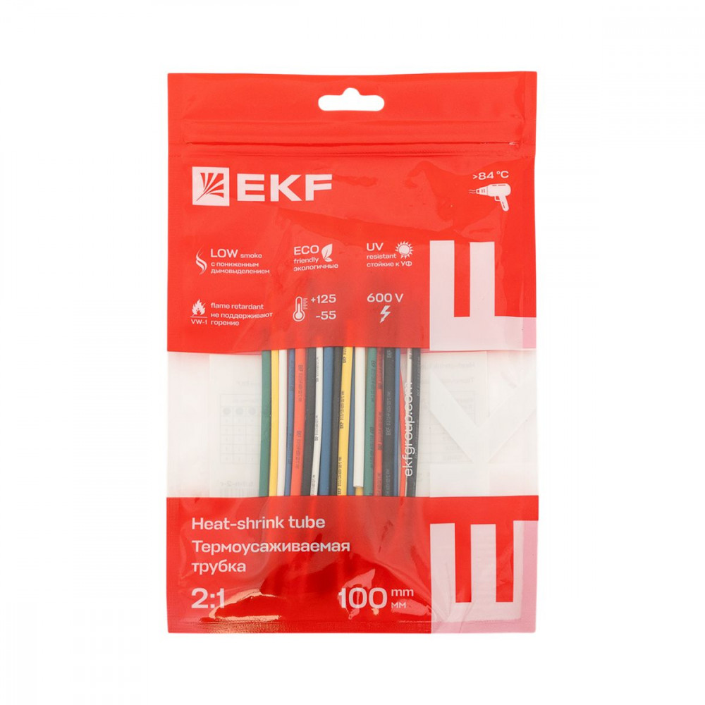 Набор трубок термоусадочных ТУТ 1/0.5; 1.5/0.75; 2/1; 2.5/1.25; 3/1.5 (6 цветов по 5шт 100мм) PROxima EKF tut-n-2-r, Изделие термоусаживаемое