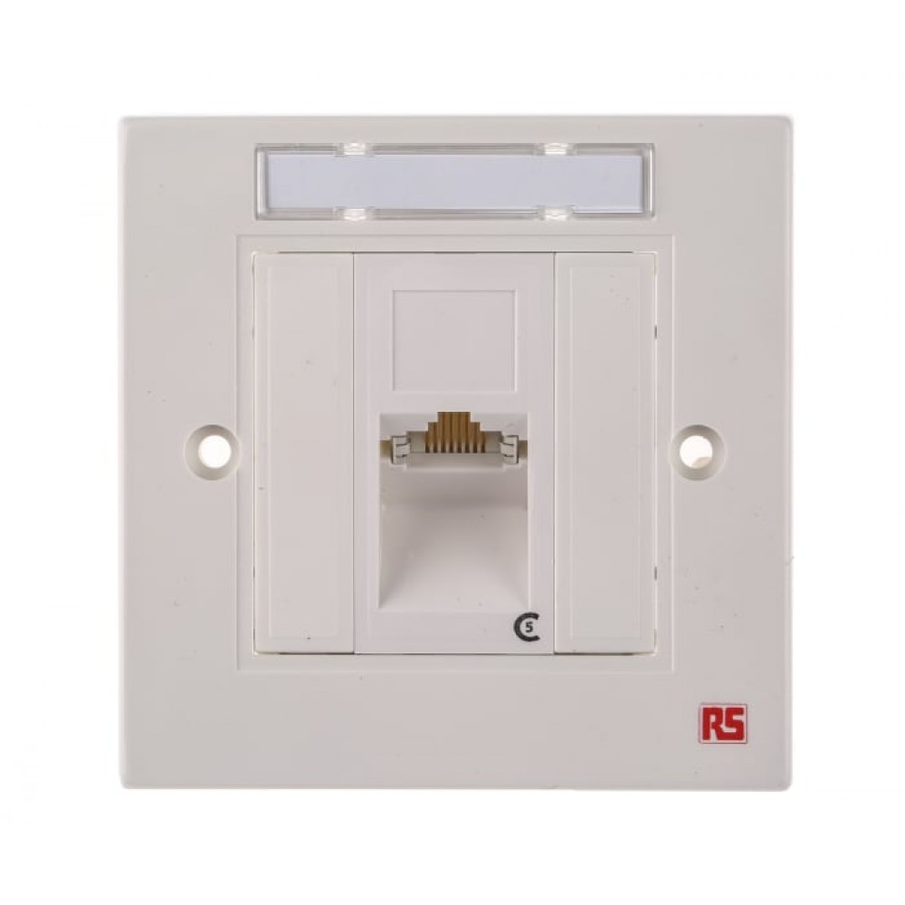 Cat 5e Angled Faceplates Category 5e RJ45 socket faceplates with angled entry, providing safer and easier lead access (less prone to damage). Low profile rear punch down terminations will accept wires in the range 22 to 28 awg. Use punch down tool for termination of wires, see Punchdown IDC Tooling. Terminations are colour coded to the T568B wiring specification.,Offered in single, double and quad socket versions, with identification labels and mounting screws