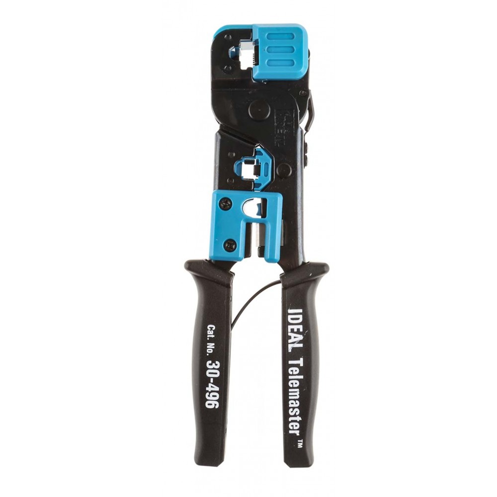 Telemaster Termination Tool From Ideal, this Telemaster termination tool is a lever assisted multi-purpose crimping tool, suitable for most common modular data plugs, including 6/6 (RJ11) and 8/8 (RJ45) types. The steel frame gives long-term durability with comfortable handle grips and operating latch. A reliable and versatile tool for anybody working with network and telecom connectors.