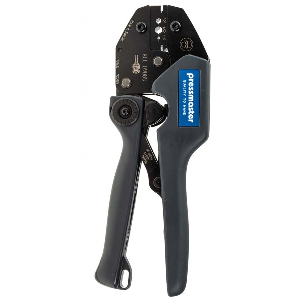 Pressmaster KCC 0908S Coaxial Hand Crimp Tool The KCC 0908S is an ergonomic hand crimp tool for coaxial cable connectors. Producing 3.25 mm, 4.52 mm, 1.69 mm/.128'', 178", and 0.067 hexagon shaped crimps, with the minimum of effort, either right or left handed. Suitable for a wide range of coaxial cable types including RG122/U, RG143A/U, RG174A/U, RG179B/U, RG180B/U, RG187A/U, RG188A/U, RG212/U, RG222/U, RG279/U, RG303/U, RG316/U, RG6 Quad, RG6A/U, Twinax