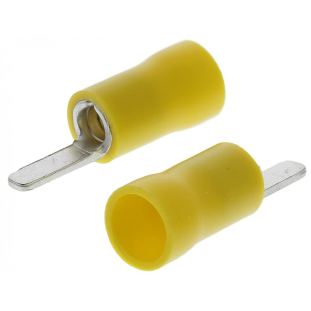 RS Pro Insulated Crimp Blade Terminals An RS Pro series of insulated crimp blade terminals made from copper with flared vinyl insulation. These insulated crimp blade wire connectors are colour coded for use with different wire sizes. All models are highly reliable and excellent quality.