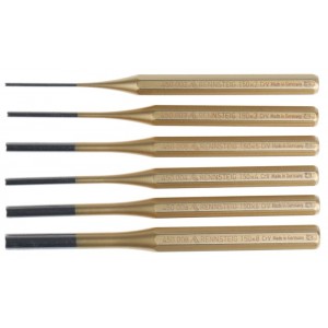 RS PRO 6 piece parallel pin punch set, 150 mm Introducing the 6 piece parallel pin punch set from RS PRO, a high quality set ideal for driving out pins from various mechanical materials. This professional standard 6 piece set is available in 2 variations with different sized pins, ideal for a range of tasks. These high quality rivet punches are forged from chrome vanadium air-hardened steel and feature a multi-coated impact head offering excellent durability with corrosion and chipping resistance. The punch pins also include a handy plastic storage stand to keep them organised and protected when not in use.