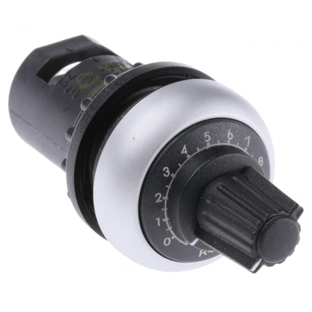 Eaton Potentiometers - M22 Series Eatons M22 range of rotary potentiometers enable a user to regulate and change the current that flows through a circuit, these rotary potentiometers can be easily controlled by turning the adjustable spindle or knob. These potentiometers are panel mount with screw terminals for easy mounting inside control panels and other electronics.