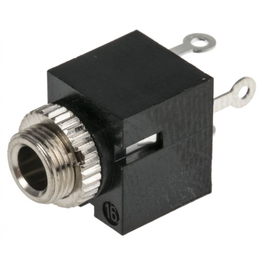 Lumberg 3.5 mm Jack Socket From Lumberg, this right angle mono jack socket is suitable for demanding applications. The enclosed socket is chassis fitting, with solder rings for secure wiring. It features a mount bushing that screws onto the connector head to hold the socket securely to a panel.