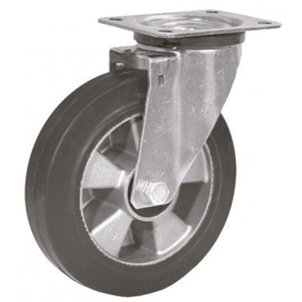 Black Elastic Rubber Tyre, Aluminium Hub, Medium Duty, Series M22