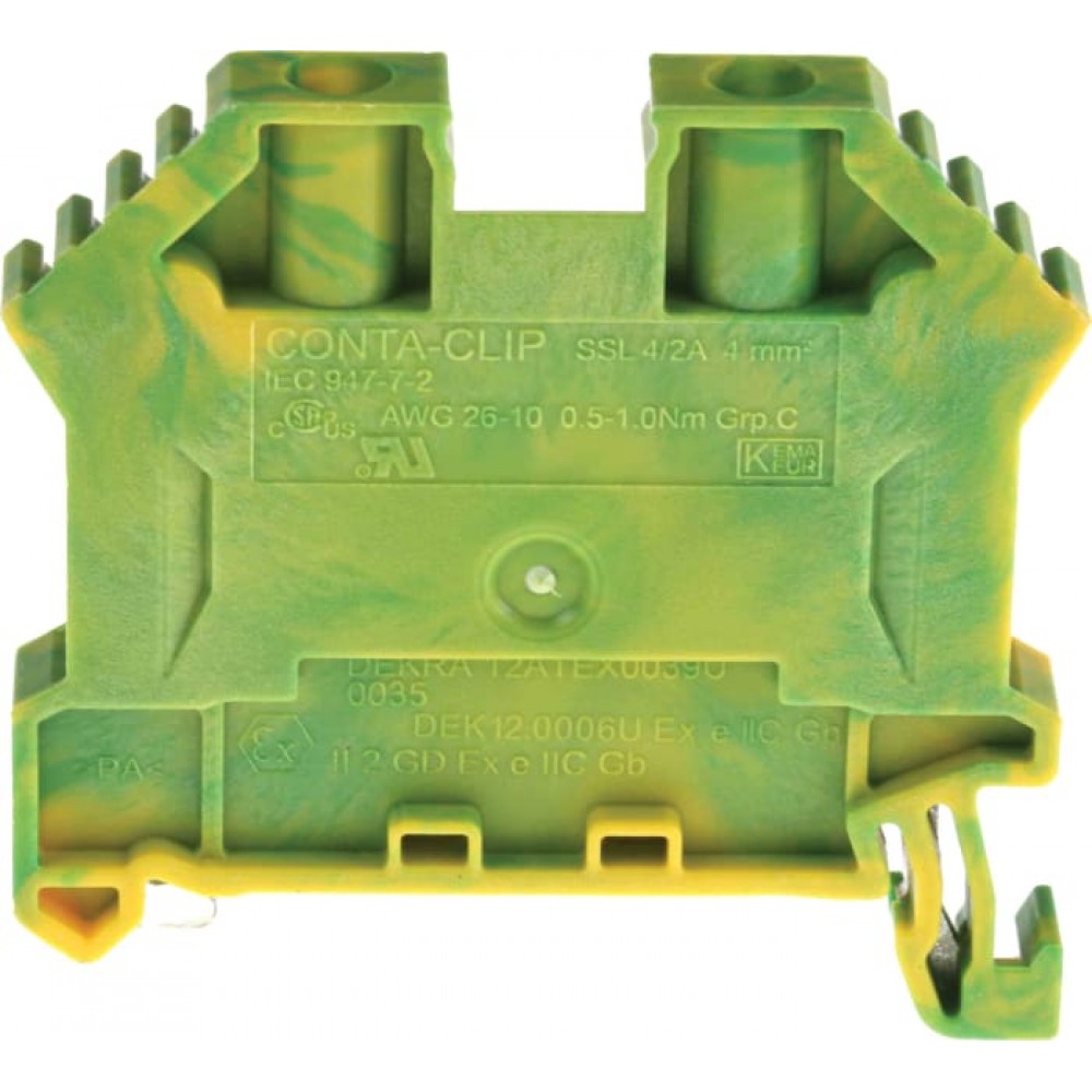 Standard Feed Through - Pluggable Cross Connection System A range of standard feed through DIN Rail terminals with an easy to operate screw connection mechanism that can connect solid and flexible wires, with or without wire-end ferrules. The pluggable insulated cross connection system allows for time saving and cost effective distribution of potentials in different terminal blocks compared to a screw cross connection system. A benefit of this improved system is that adjacent terminals of two different sizes can be cross connected. The 2 cross connection channels allow for an infinite number of terminals to be daisy chained. The earth terminals can be clipped on to the DIN rail without the need for screws. This range of standard terminals has an improved upper temperature range of 120°C. The screw head of the standard terminals is completely mounted into the body so that the metal parts cannot slip out when tightening the screw of the terminal.