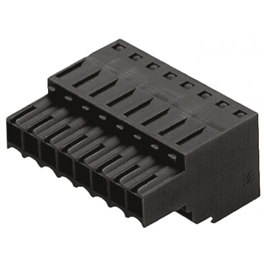 Standard Density Connector Cable Mount Tension Clamp Black Female plug 180° terminal blocks feature a clamping-yoke screw system that enables you to connect wires with a straight outlet direction in a 3.5 mm pitch. The clamping yoke steel is hardened and zinc-chromed plated. The terminals are two-part and the current carrying parts of these are tin plated copper alloy.