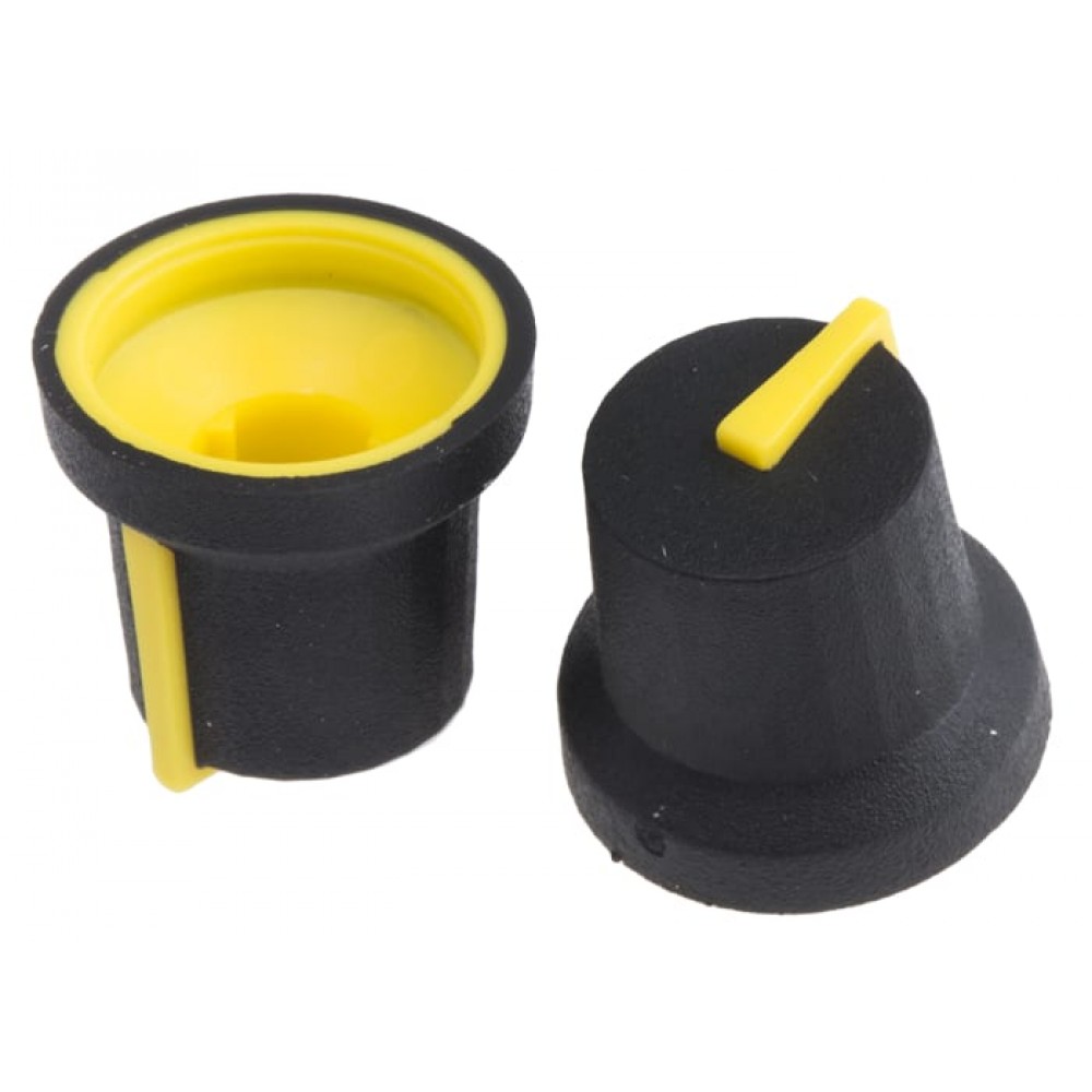 RS Soft touch splined push on control knobs 2 colour knobs black body with stripe, suitable for splined 6mm shaft potentiometers
