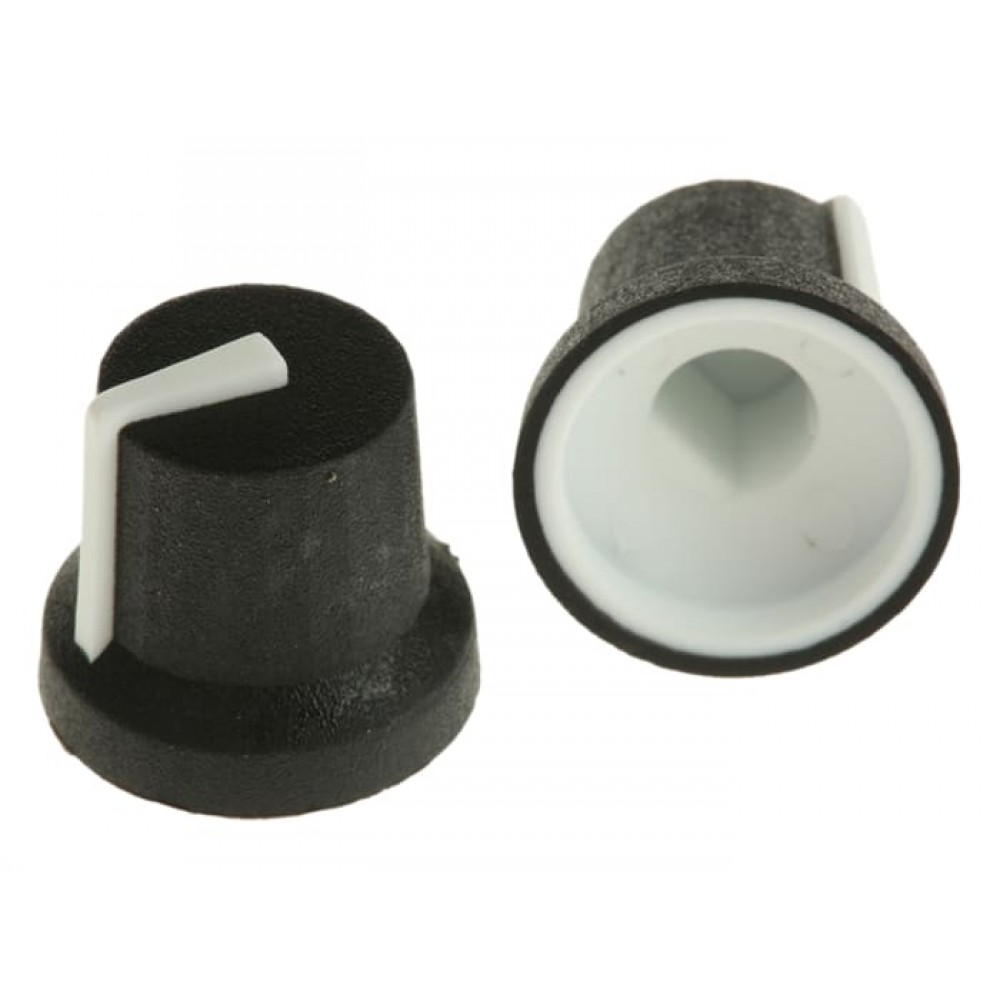 RS Soft touch D Shaft push on control knobs 2 colour knobs black body with stripe, suitable for 6mm D shaft potentiometers