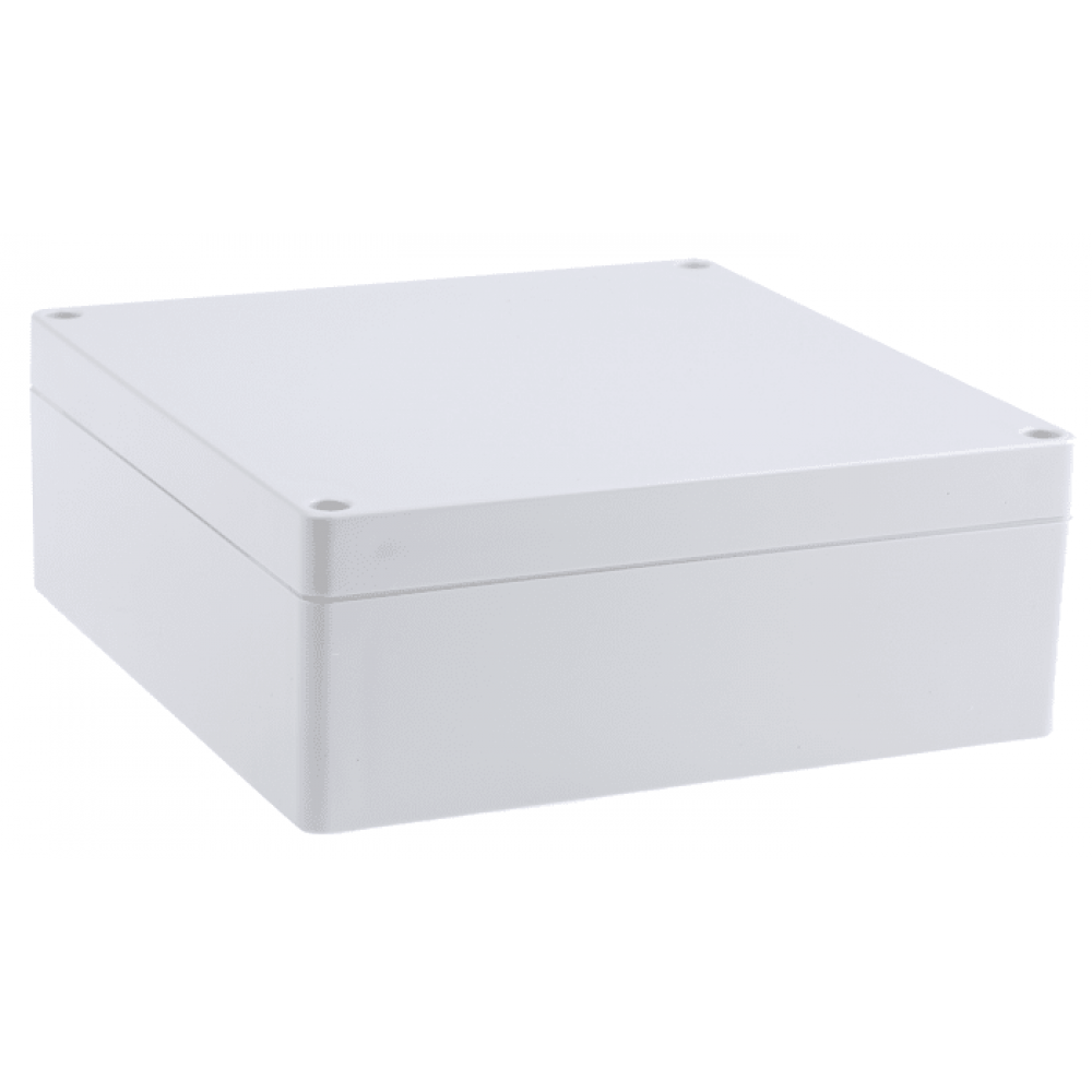 Hammond 1554 Watertight Plastic Enclosure The Hammond 1554 series is a watertight enclosure moulded in grey ABS plastic with a flammability rating of UL94 HB. The two piece tongue & groove construction provides IP66 protection against oil, dust and water. The enclosure interior has DIN rail mounting tabs and vertical P.C. card guides (for 1.5 mm thick P.C. boards).