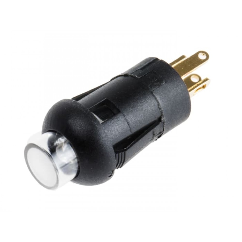 The case and housing is made from high-quality Nylon 6/6 and terminal is made from copper alloy with gold plated material. The total length of a push button switch is 23mm. You can choose from solid black or illuminated water clear actuator. Illuminated colour variants include blue, green, yellow, white and red. If you are after dual colour version, we can offer that too.