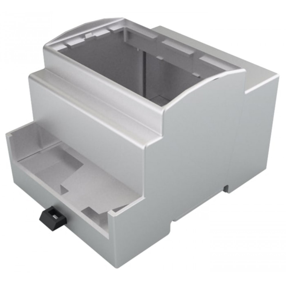 Modulbox XTS DIN Rail Mount Enclosures The Modulbox XTS version B is a DIN Rail mountable enclosure. It is designed according to DIN 43880 to meet the needs of various applications including heating & lighting control and energy metering. These DIN Rail mounting enclosures are available as 3, 4, 6, 9 and 12 module versions, in a standard height of 53 mm. The Modulbox XTS B boasts a high shoulder on one side of the enclosure allowing for extra volume within the enclosure for larger components. The two-step feature on the opposite side leaves room for inputs/outputs such as PCB-mounted terminal blocks.
