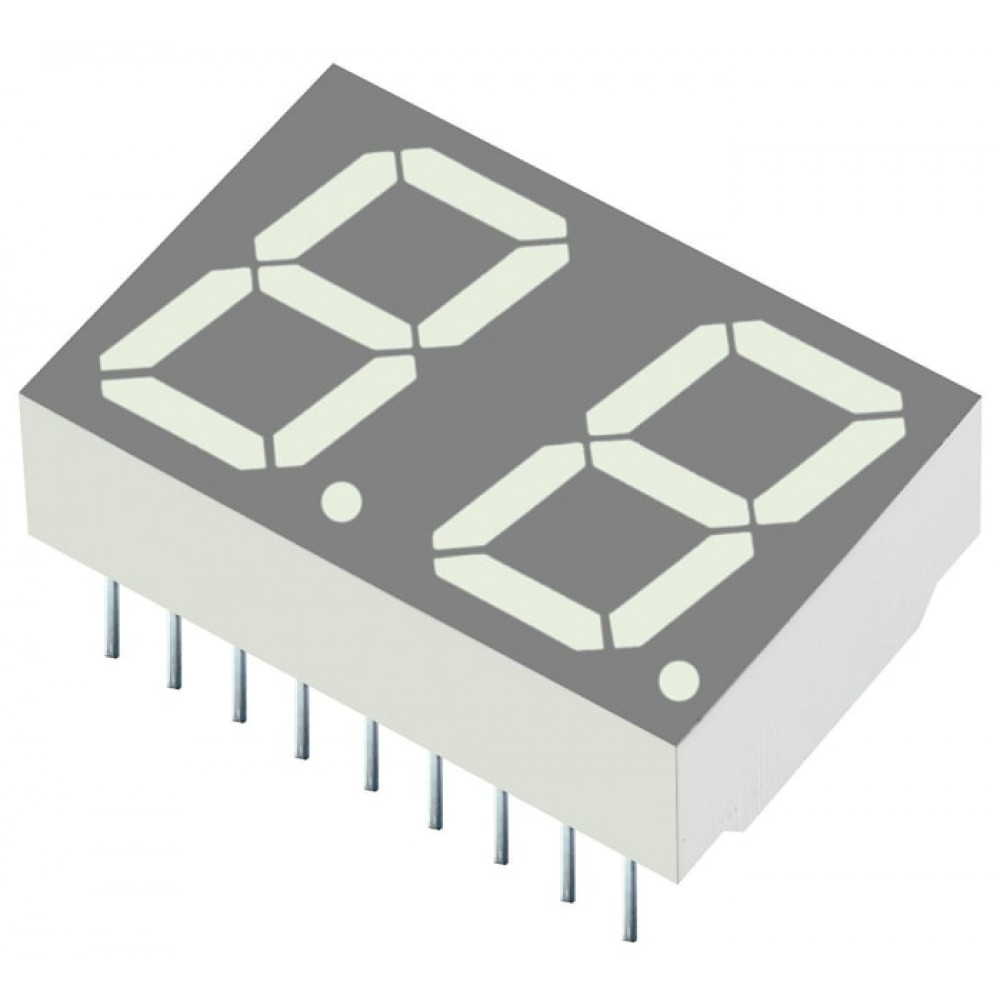 Kingbright Dual Digit, 10.0 to 20.3mm A range of dual-digit 7-segment LED displays from Kingbright. The displays exhibit excellent visibility with high on/off contrast, and are available in a range of colours.