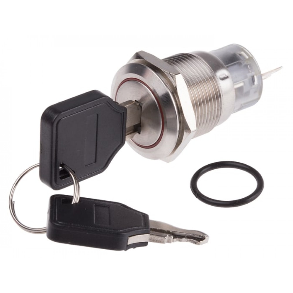 19mm Anti-Vandal Key Lock Switches Anti-vandal key lock switches with ring for location or power indication, various colours are available.The switches have an impact resistance rating of IK03, and a front panel protection rating of IP40. They are fitted with an LED resistor to protect from forward voltage fluctuations.The switch body and button are construction from varnished stainless steel.