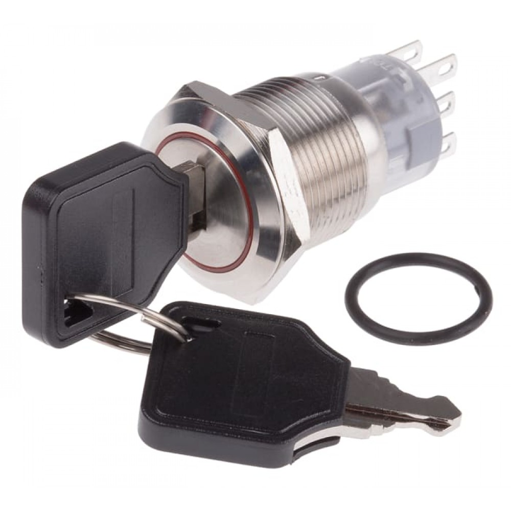 19mm Anti-Vandal Key Lock Switches Anti-vandal key lock switches with ring for location or power indication, various colours are available.The switches have an impact resistance rating of IK03, and a front panel protection rating of IP40. They are fitted with an LED resistor to protect from forward voltage fluctuations.The switch body and button are construction from varnished stainless steel.