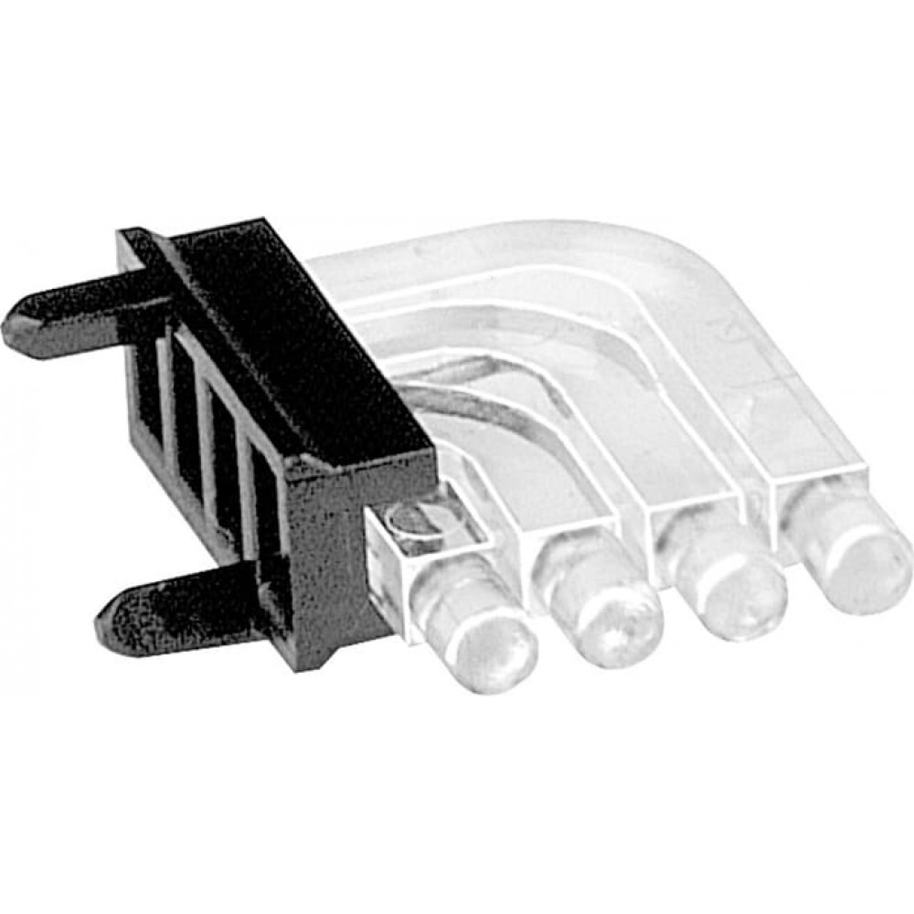 Horizontal Light Guides, 4 Row - Round This family of horizontal light guides, from MENTOR, consist of four rows of light pipes. The round heads are available in 2 mm or 3 mm diameters and are parallel to the printed board on the front panel. This range of quad-level light guides is available in single column or multiple column arrays with up to 40 heads. These light guides use a light diffusing screen to prevent radiation when using a combination of different colours.
