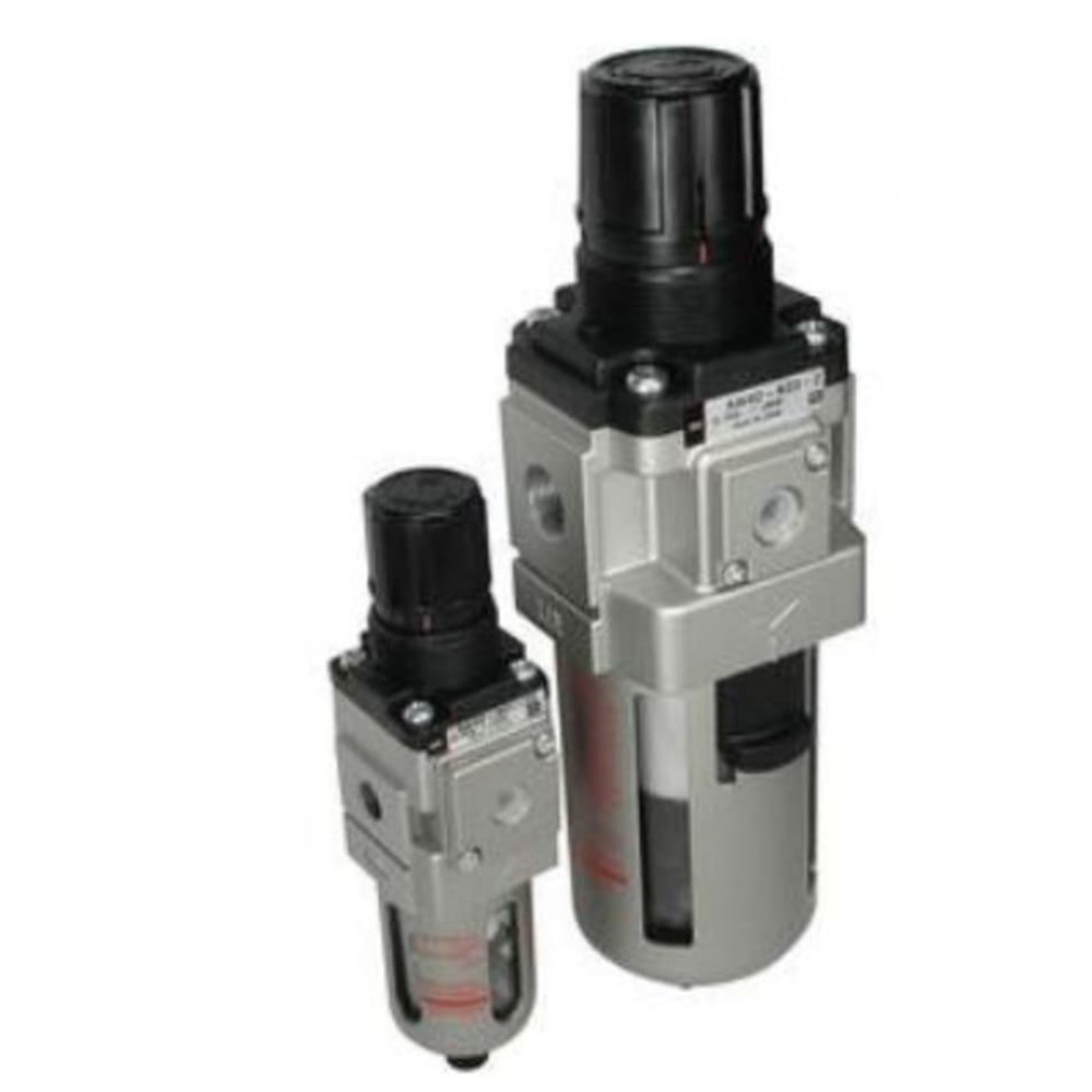 Modular Filter Regulator AW10-B - AW40-B SMCs AW-B series of compact filter regulators combine a filter and regulator into one unit saving on space a piping. Part of SMCs modular air prep range the AW-B can be combined with other components such as a lubricator, soft start valve and mist separators of similar body size to meet the requirements of most air preparation systems. These filter regulators are available in a selection of body sizes from 10 to 40 with piping from G1/8 to G1/2 (also available as M5x0.8). Various options are available including normally open or normally closed autodrain function, round or square pressure gauges and panel mounting kits.