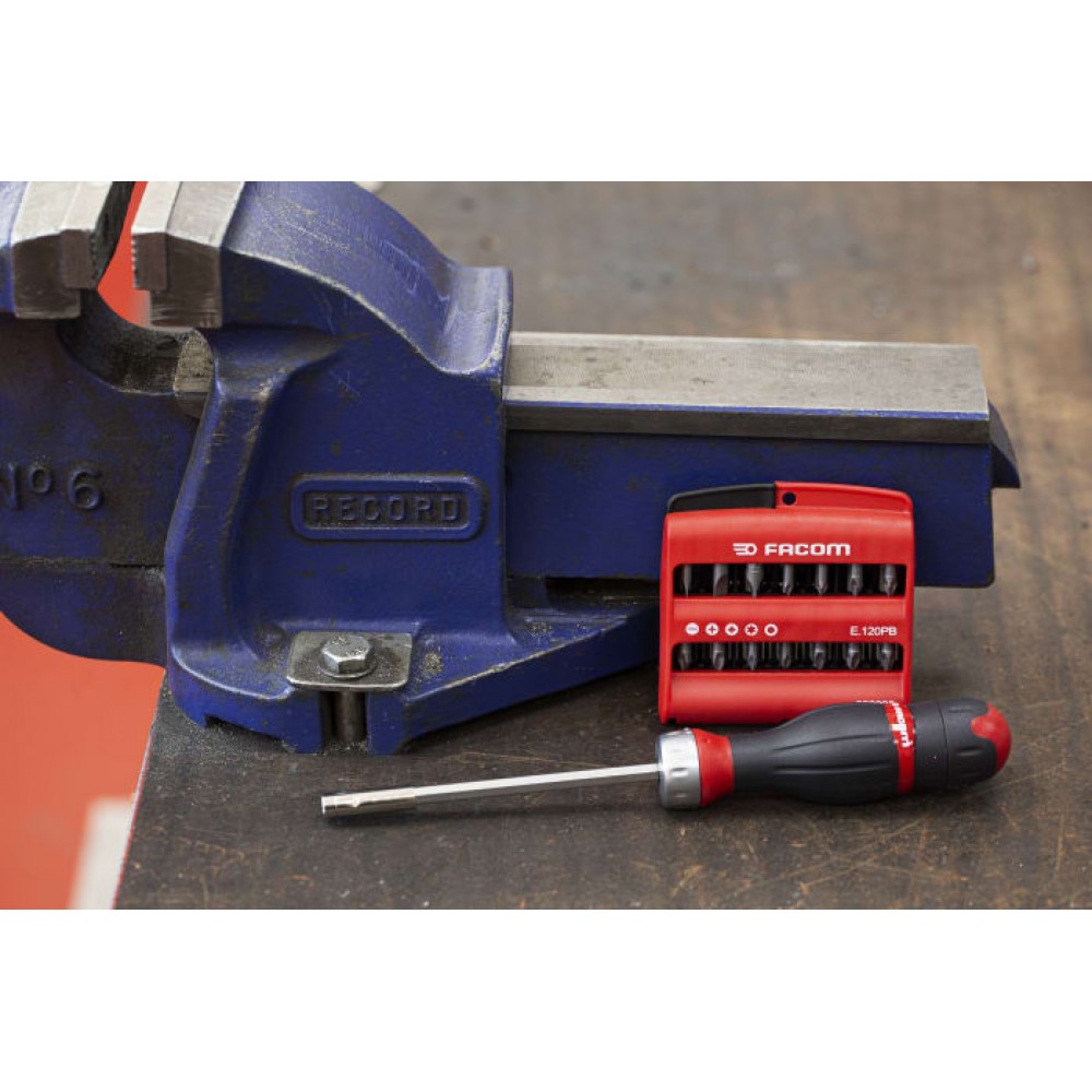Facom 3 in 1 Bit Driver and 28pc Bit Set The ACL.2A2PB 3 in1 Bit Driver from Facom is designed to offer maximum flexibility. Offering a comfortable bi-material handgrip for good torque transfer. Manufactured from the premium quality materials guarantees safe and longlife operation. As all other Facom handtools, this screwdriver bit set is covered by lifetime warranty. Screwdriver bit set ACL.2A2PR features 50mm bit holder, ratcheting mechanism, reversible blades, and bit holder cap that stores up to 6 bits. Also, the ACL.2A2PB can be transformed into a T-Handle driver. The 45 tooth ratcheting mechanism delivers high performance although maintaining low reverse torque. Bit holder cap can be easily changed into a stubby screwdriver. Giving great access to small spaces.