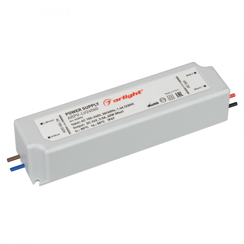Описание Блок питания ARPV-LV24060 (24V, 2.5A, 60W) (Arlight, IP67 Пластик, 2 года)