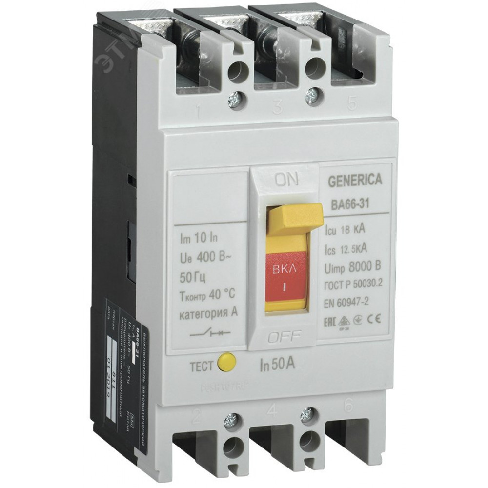 Описание Выключатель автоматический ВА66-31 3Р 50А 18кА GENERICA SAV10-3-0050-G