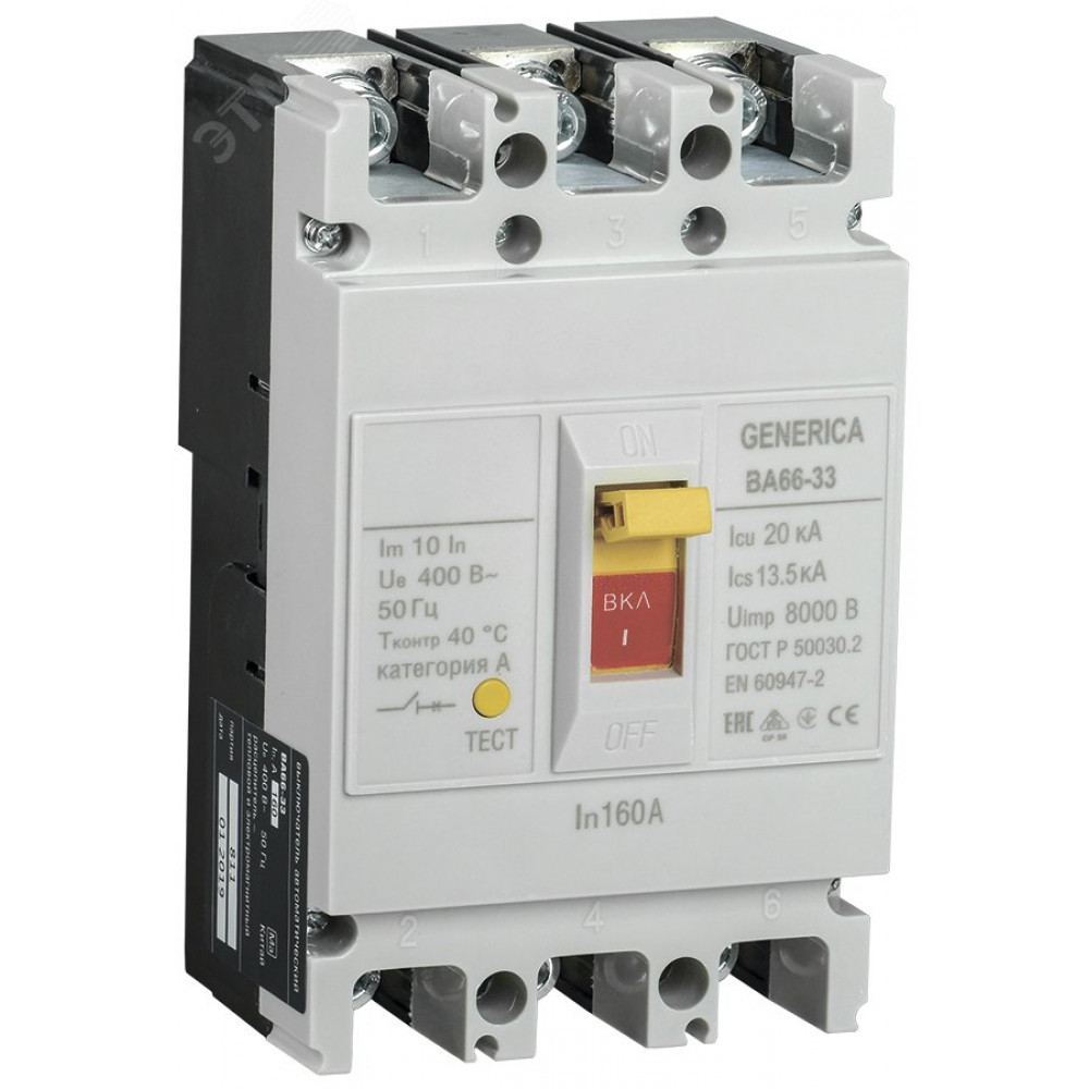 Выключатель автоматический ВА66-33 3Р 160А 20кА GENERICA SAV20-3-0160-G, Выключатель автоматический силовой