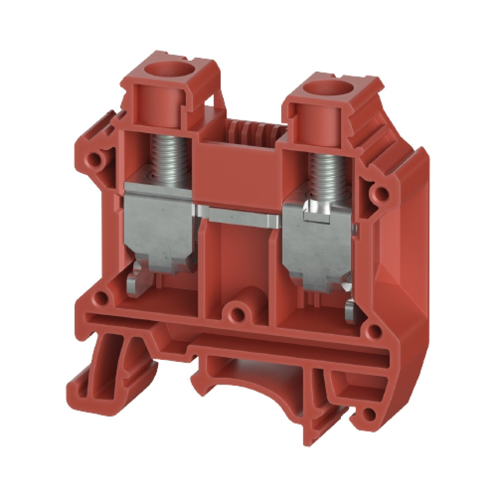 Проходная клемма, тип фиксации провода: винтовой, номинальное сечение: 16 мм кв., 76A, 1000V, ширина: 12 мм, цвет: красный тип монтажа: DIN35