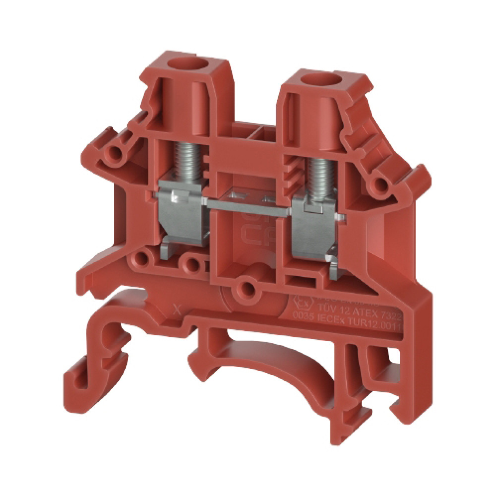 Проходная клемма, тип фиксации провода: винтовой, номинальное сечение: 4 мм кв., 12A, 800V, ширина: 6,1 мм, цвет: красный тип монтажа: DIN35