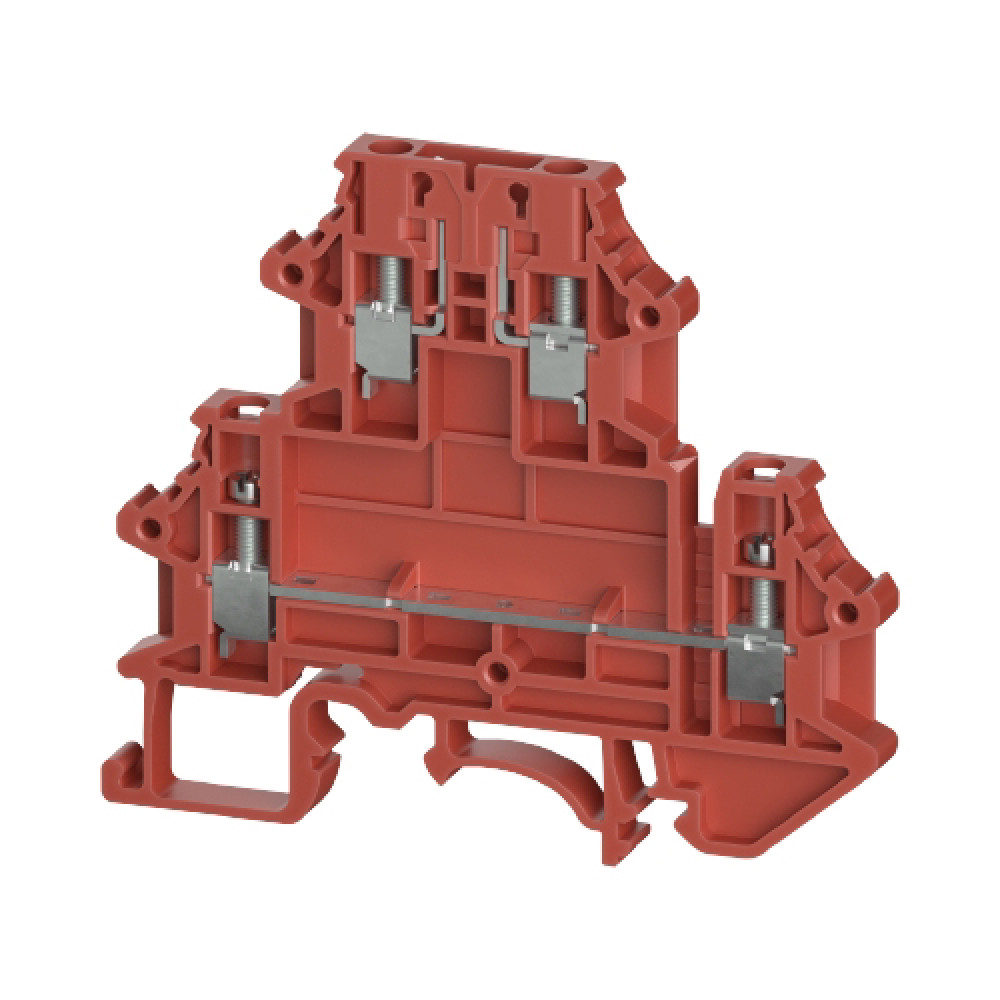 Этажная клемма, 2 этажа, для модулей тип фиксации провода: винтовой, номинальное сечение: 2,5 мм кв., 23A, 400V, ширина: 5,1 мм, цвет: красный тип монтажа: DIN35