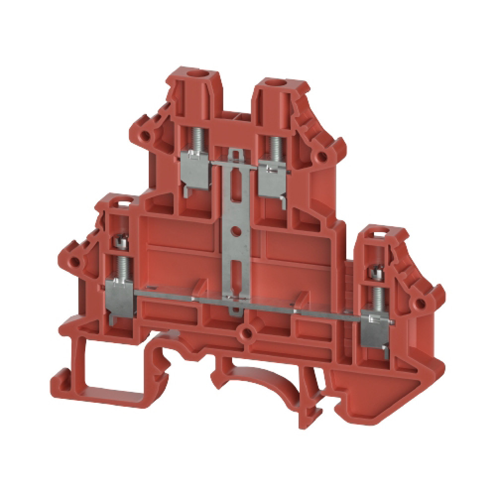 Этажная клемма, 2 этажа, межэтажная перемычка, тип фиксации провода: винтовой, номинальное сечение: 2,5 мм кв., 24A, 400V, ширина: 5,1 мм, цвет: красный тип монтажа: DIN35