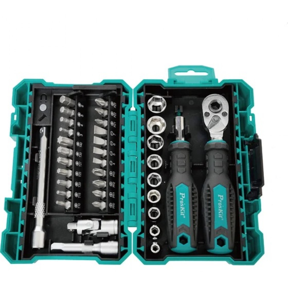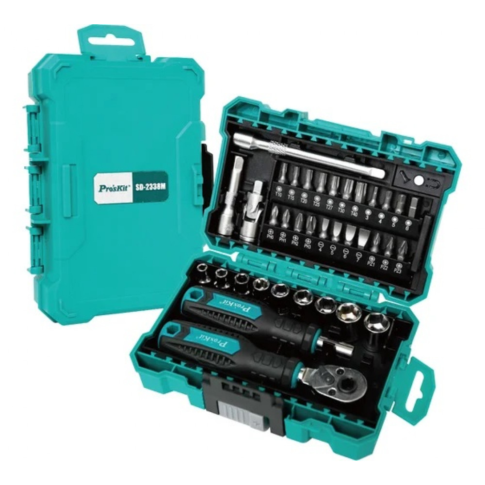 SD-2338M, Набор универсальный торцевых головок и бит с трещеточной отверткой, 9 головок,11 бит,удлинитель,переходник угловой,насадки