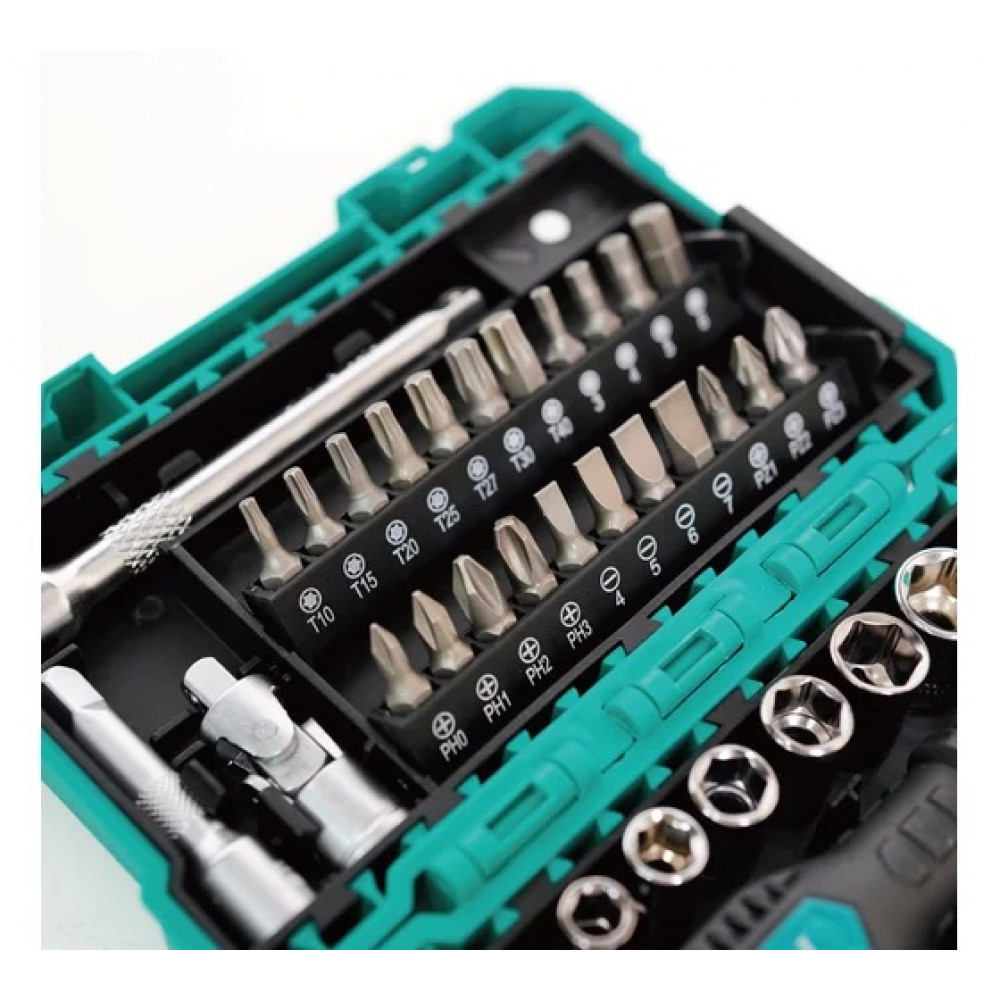 Доставка SD-2338M , Набор универсальный торцевых головок и бит с трещеточной отверткой, 9 головок,11 бит,удлинитель,переходник угловой,насадки