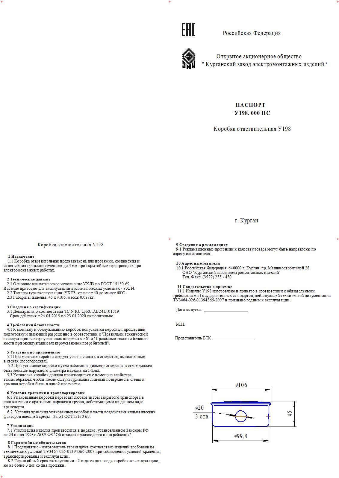 Описание Коробка ответвительная У198 УХЛ4, оцинкованный лист П0000022420