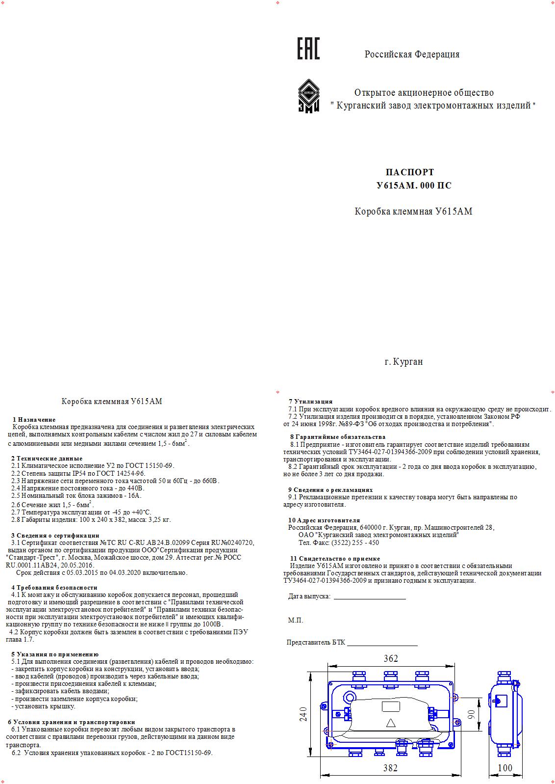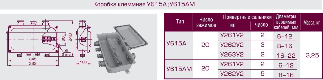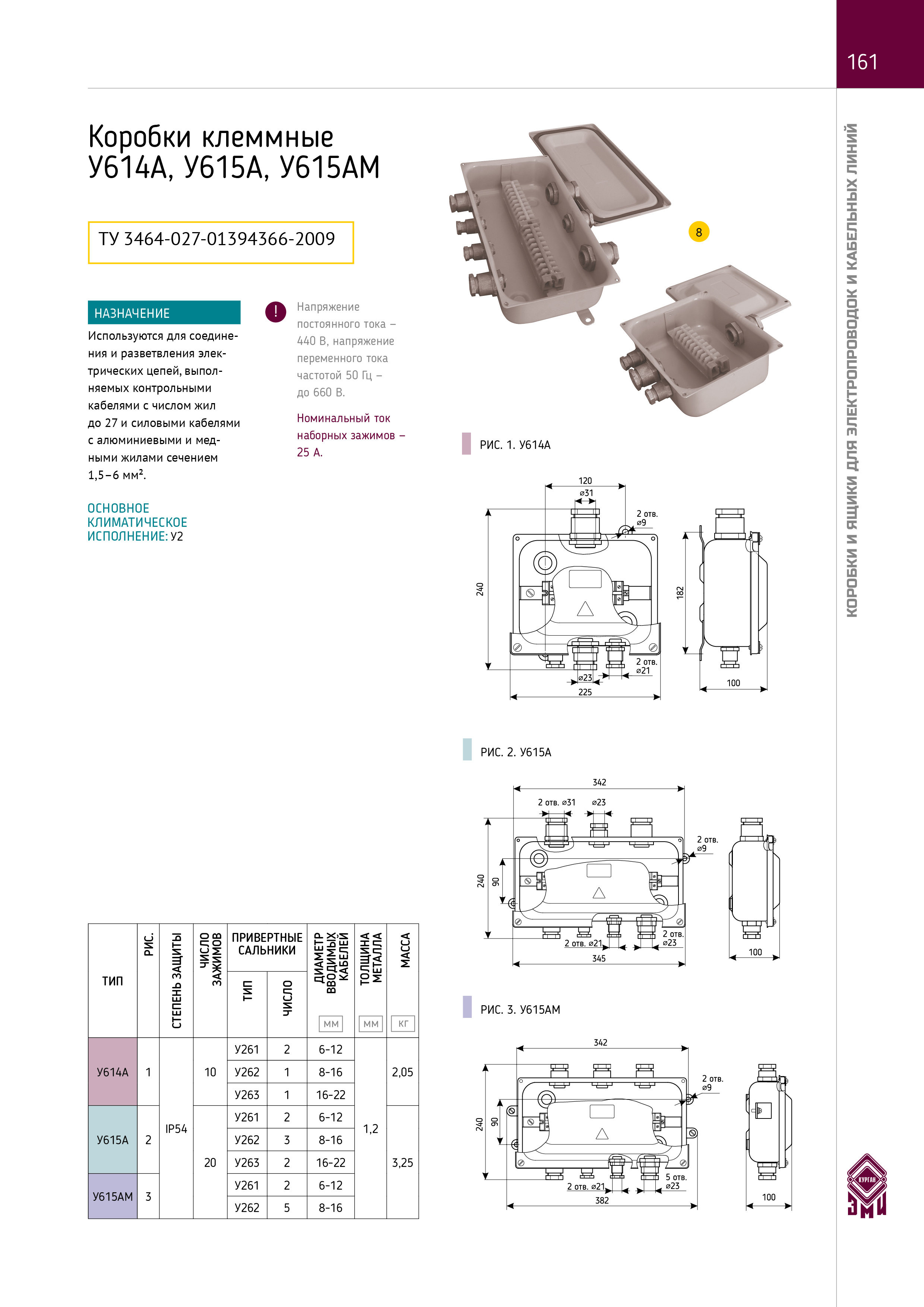 Описание Коробка клеммная У615АМ У2, 20 зажимов, IP54 П0000000274