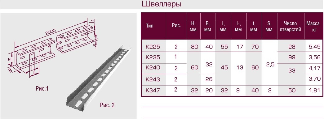 Швеллер перфорированный К235 УТ1,5 оцинкованный лист S2,0 П0000000361, Аксессуар к кабеленесущей системе