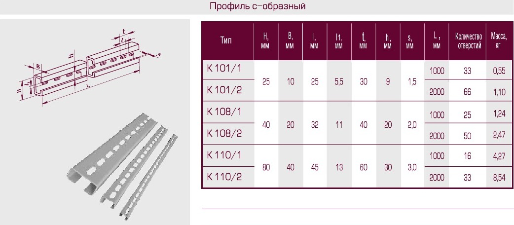 Описание Профиль С-образный перфорированный К108 У3 окрашенный S2,0 П0000006686