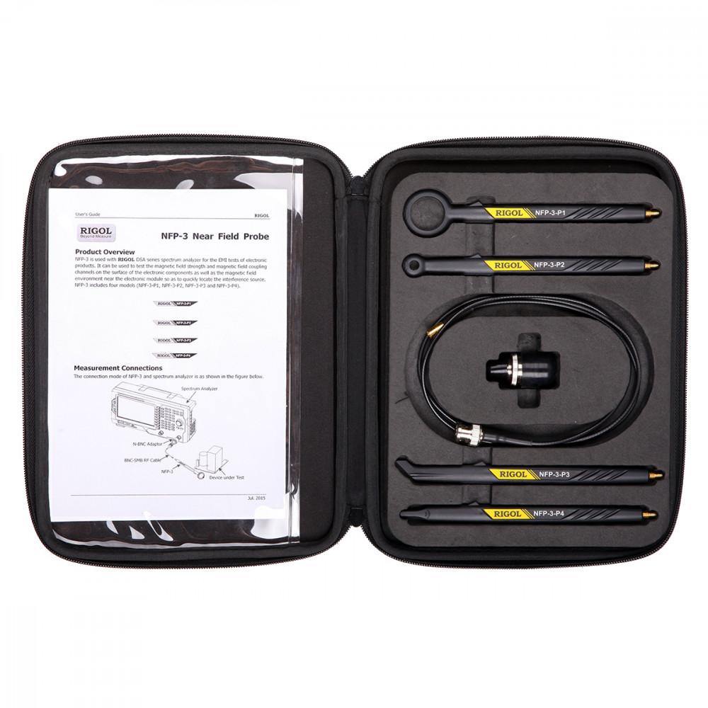 Набор зондов ближнего поля NFP-3 представляет из себя комплект из 4-х моделей пробников (NFP-3-P1, NFP-3-P2, NFP-3-P3, NFP-3-P4), предназначенных для измерения напряженности магнитного поля при помощи анализаторов спектра в процессе тестирования на ЭМС в диапазоне от 30 МГц до 3 ГГц. Подключаются к 50-омному входу анализатора спектра.